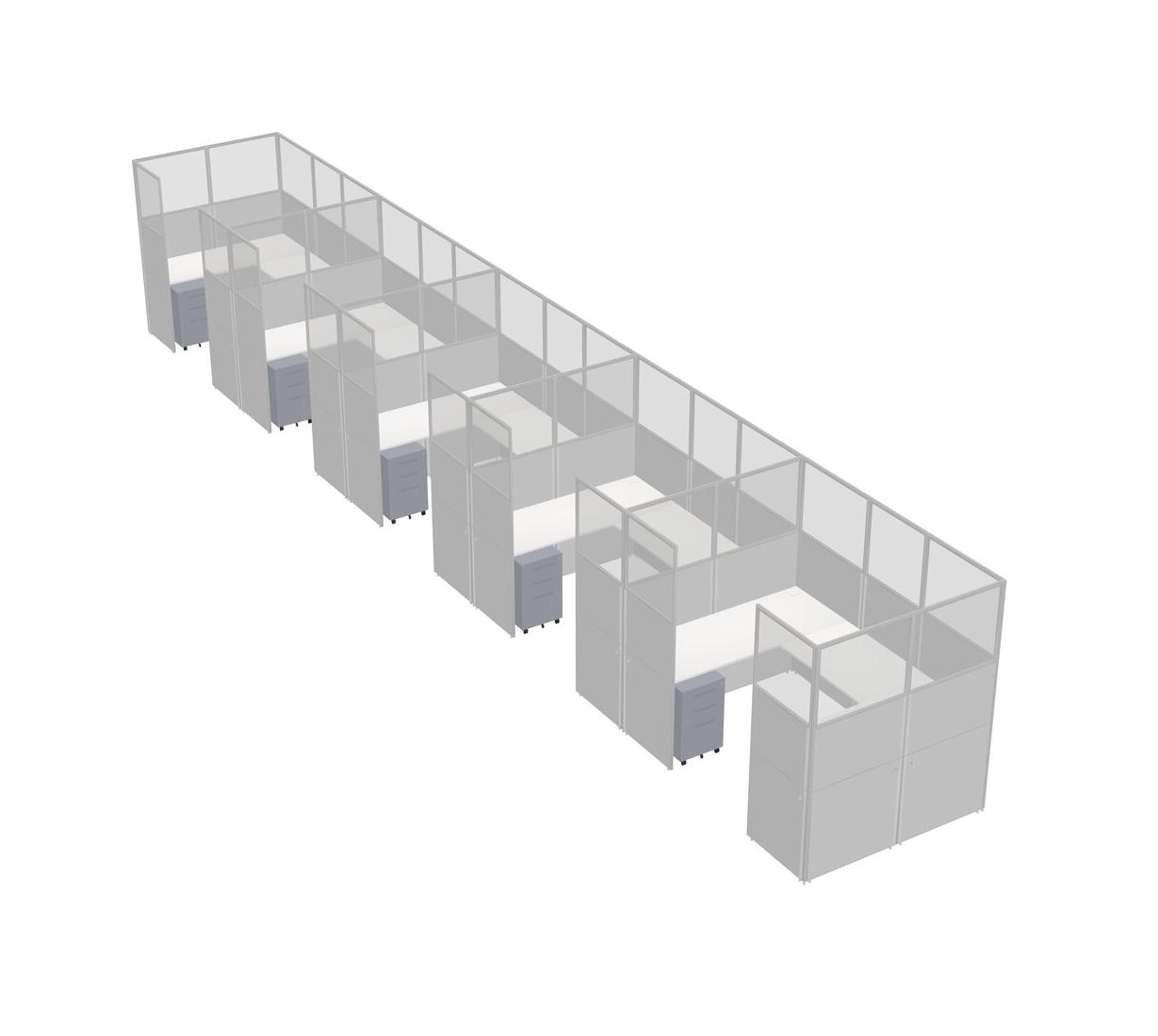 White U-shaped Panel System For 5 Person + Metal Mobile Drawers For 5 User(s)