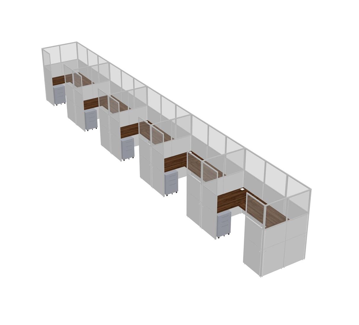 Columbia Walnut U-shaped Panel System For 5 Person + Metal Mobile Drawers For 5 User(s)