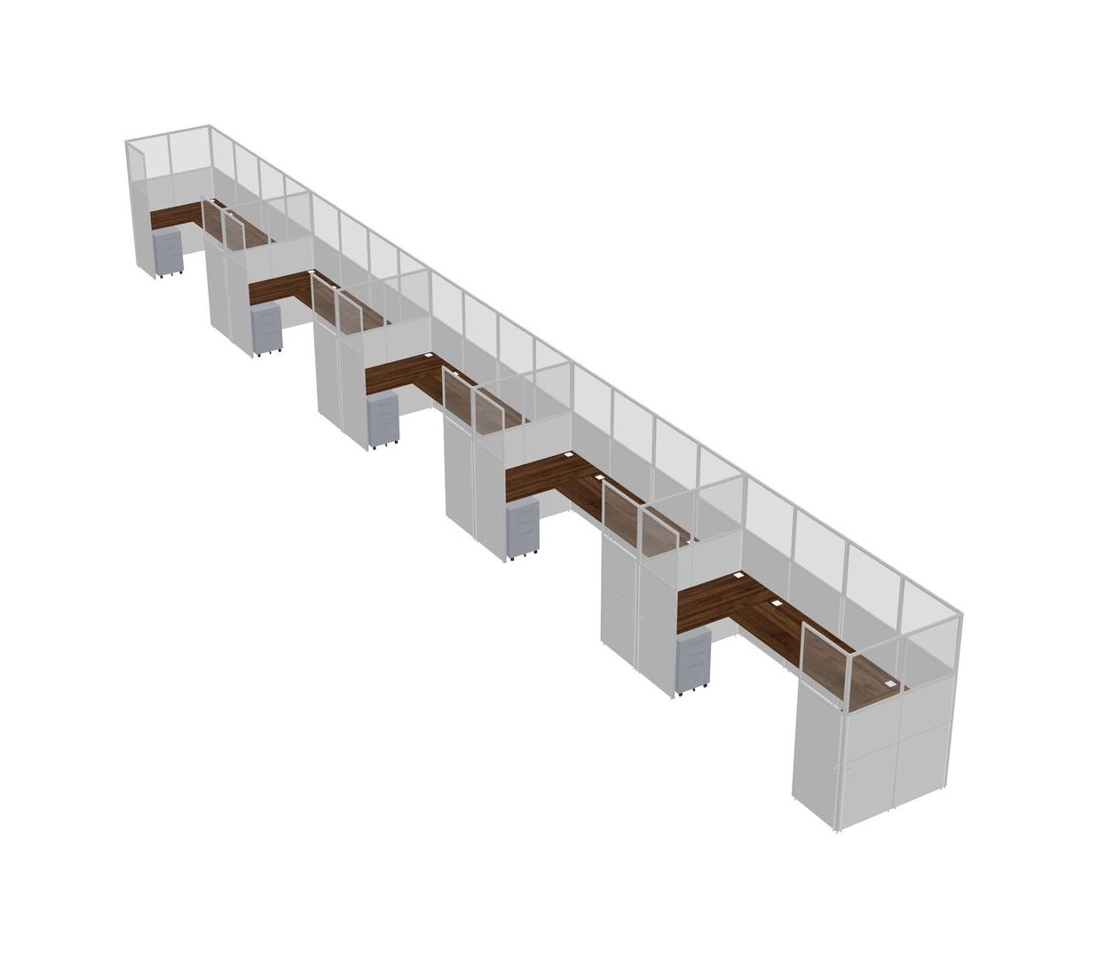 Columbia Walnut U-shaped Panel System For 5 Person + Metal Mobile Drawers For 5 User(s)