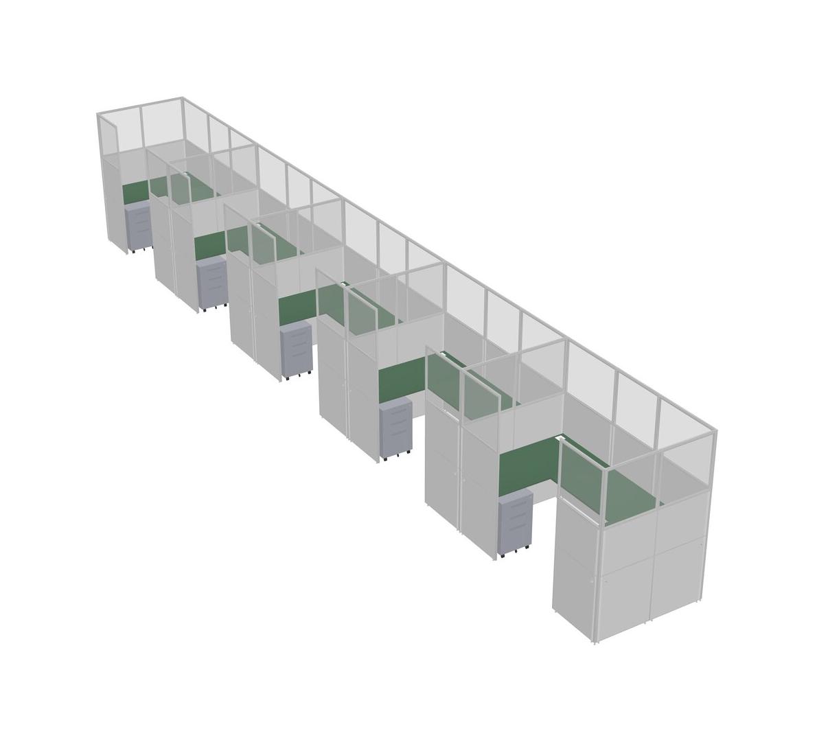 Green U-shaped Panel System For 5 Person + Metal Mobile Drawers For 5 User(s)