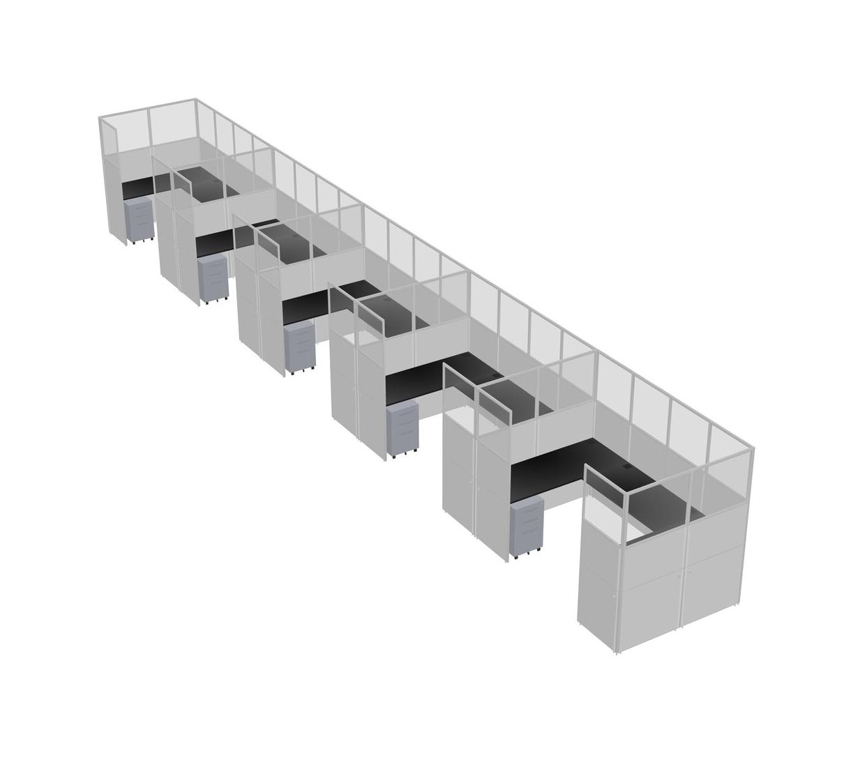 Black U-shaped Panel System For 5 Person + Metal Mobile Drawers For 5 User(s)
