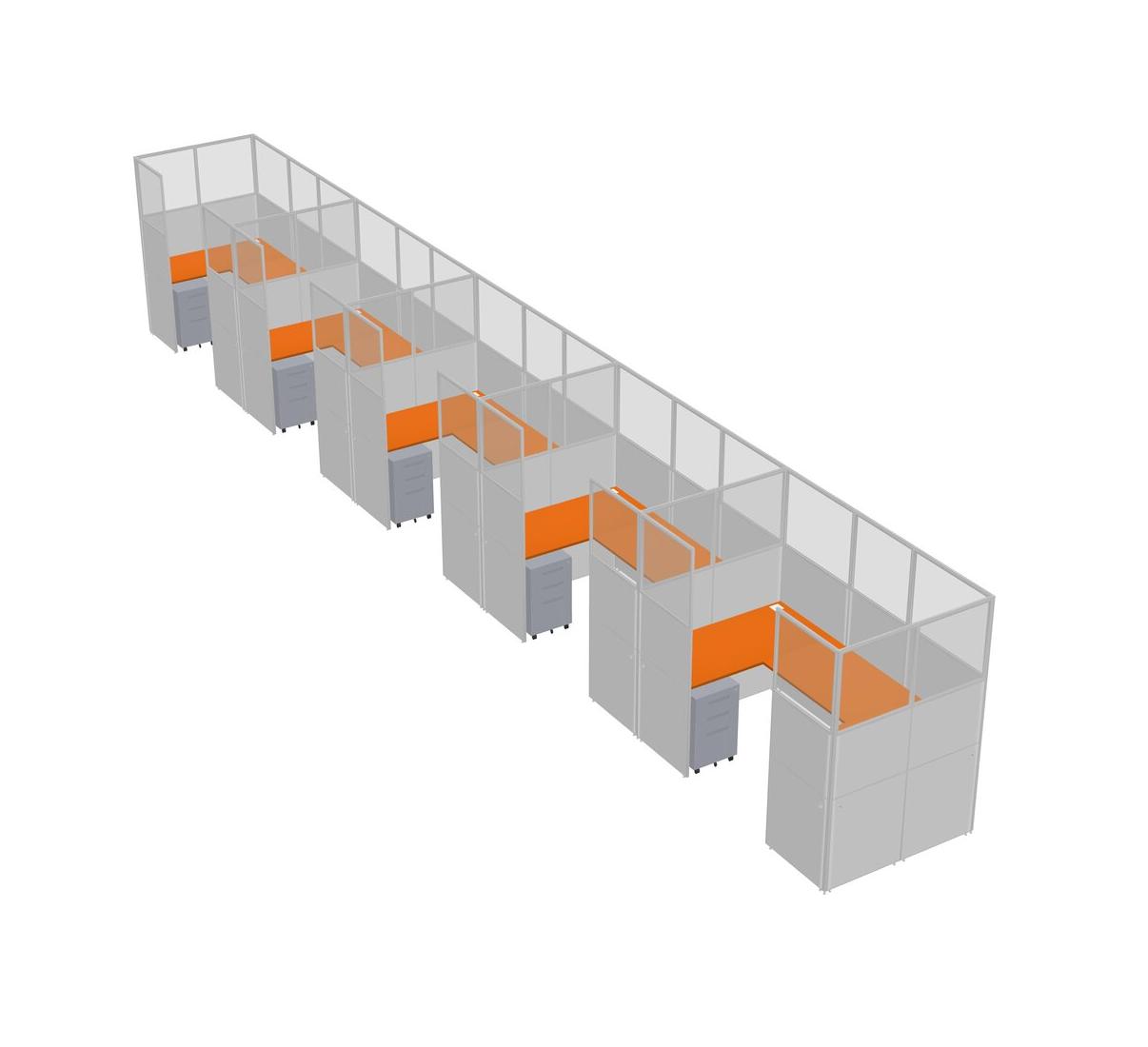 Orange U-shaped Panel System For 5 Person + Metal Mobile Drawers For 5 User(s)