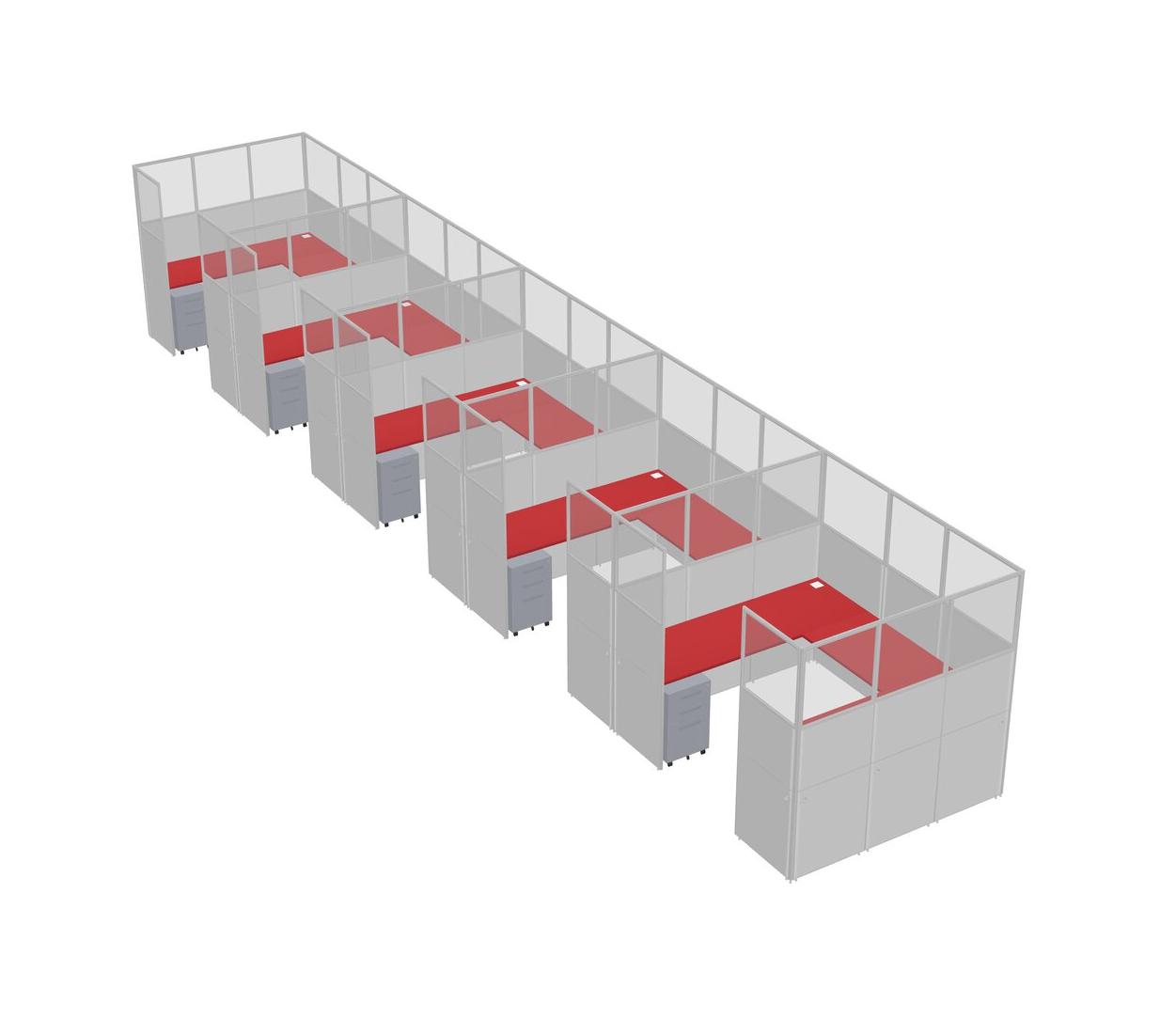 Prism Red U-shaped Panel System For 5 Person + Metal Mobile Drawers For 5 User(s)