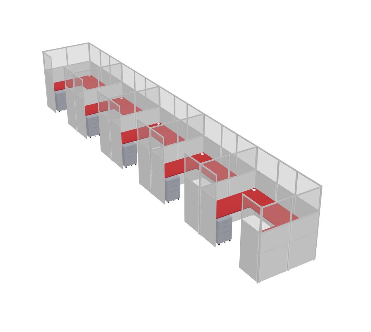 Prism Red U-shaped Panel System For 5 Person + Metal Mobile Drawers For 5 User(s)