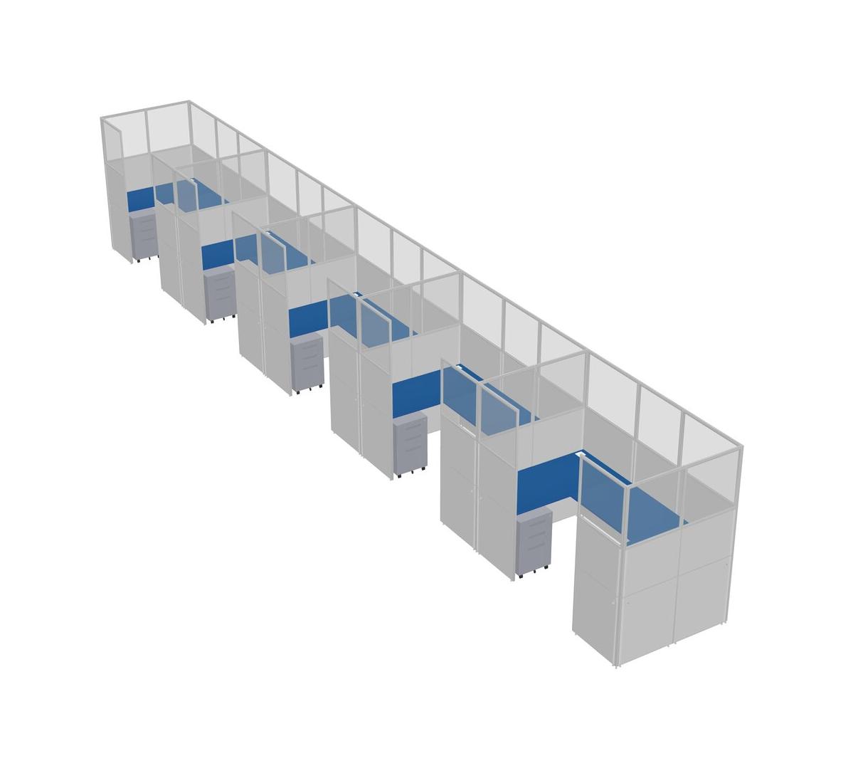 Prism Blue U-shaped Panel System For 5 Person + Metal Mobile Drawers For 5 User(s)