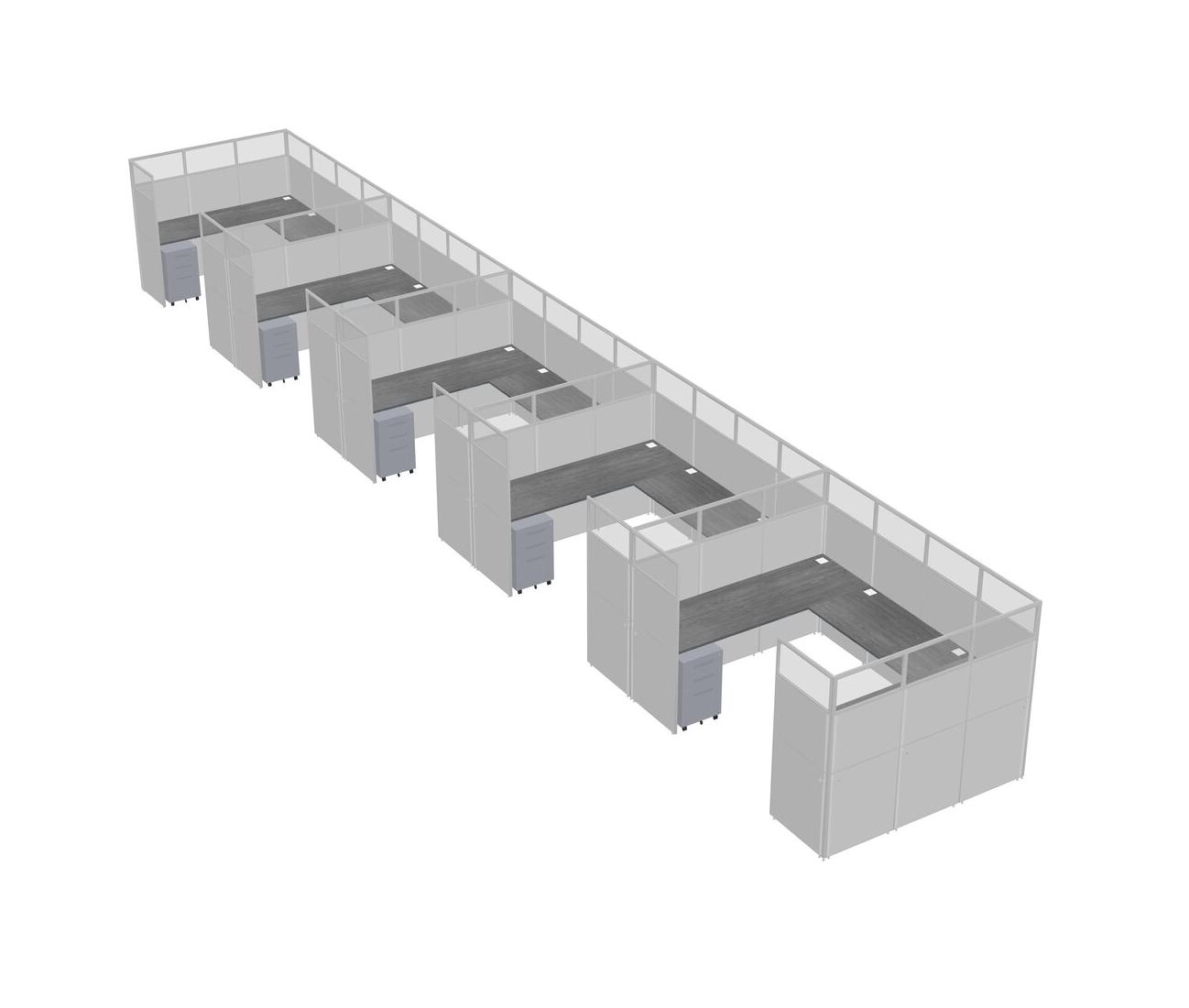 Grey U-shaped Panel System For 5 Person + Metal Mobile Drawers For 5 User(s)