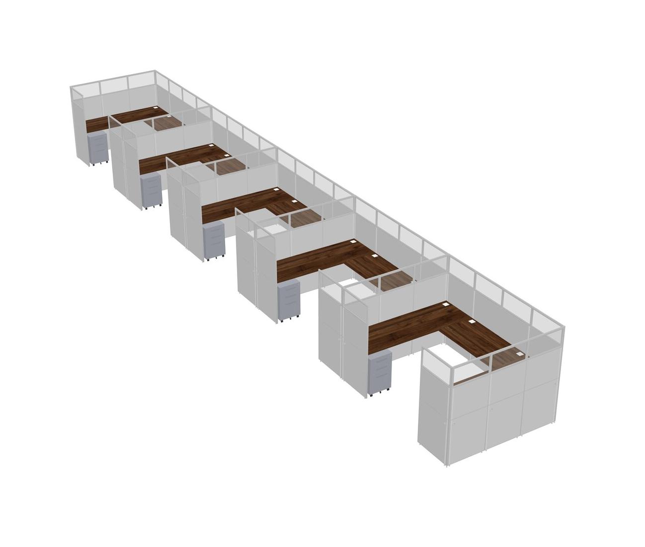 Columbia Walnut U-shaped Panel System For 5 Person + Metal Mobile Drawers For 5 User(s)
