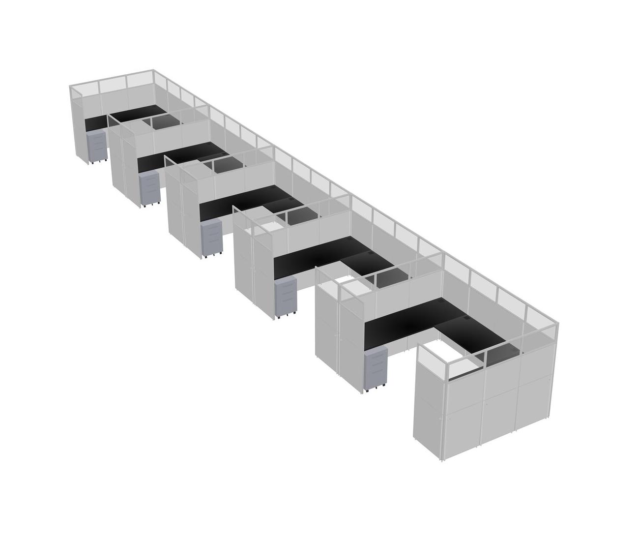 Black U-shaped Panel System For 5 Person + Metal Mobile Drawers For 5 User(s)