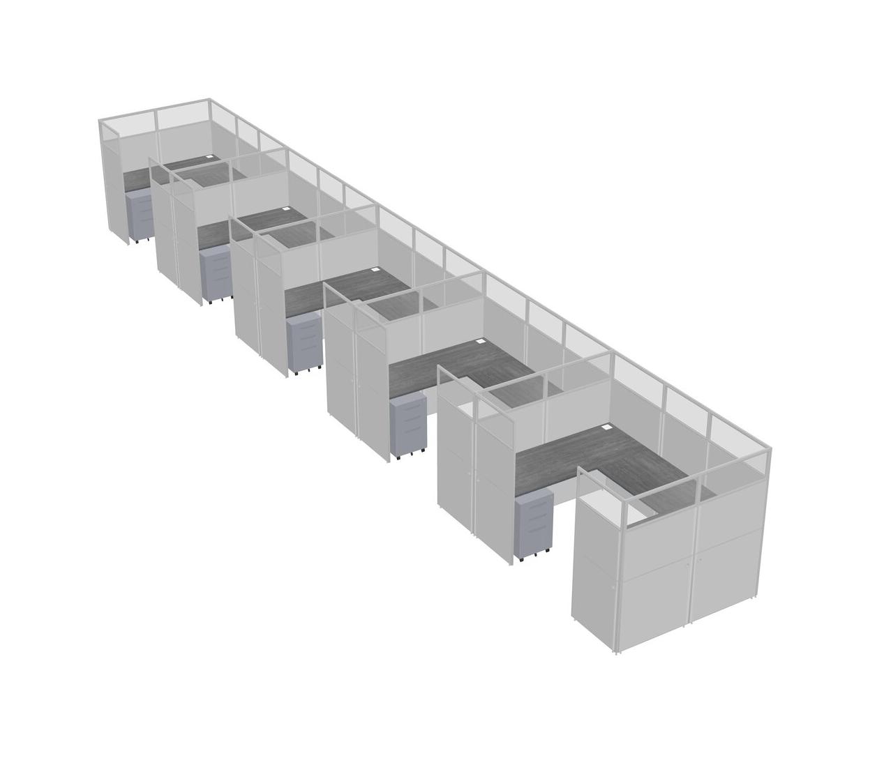 Grey U-shaped Panel System For 5 Person + Metal Mobile Drawers For 5 User(s)