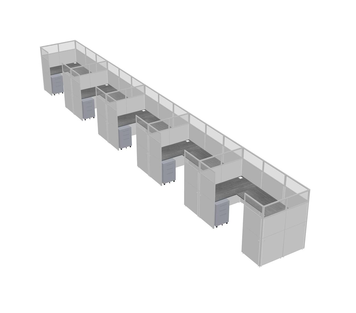 Grey U-shaped Panel System For 5 Person + Metal Mobile Drawers For 5 User(s)