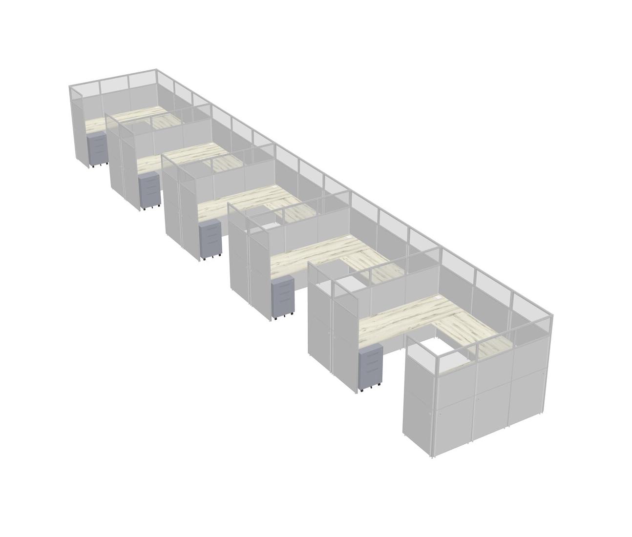 Heinne Holz U-shaped Panel System For 5 Person + Metal Mobile Drawers For 5 User(s)