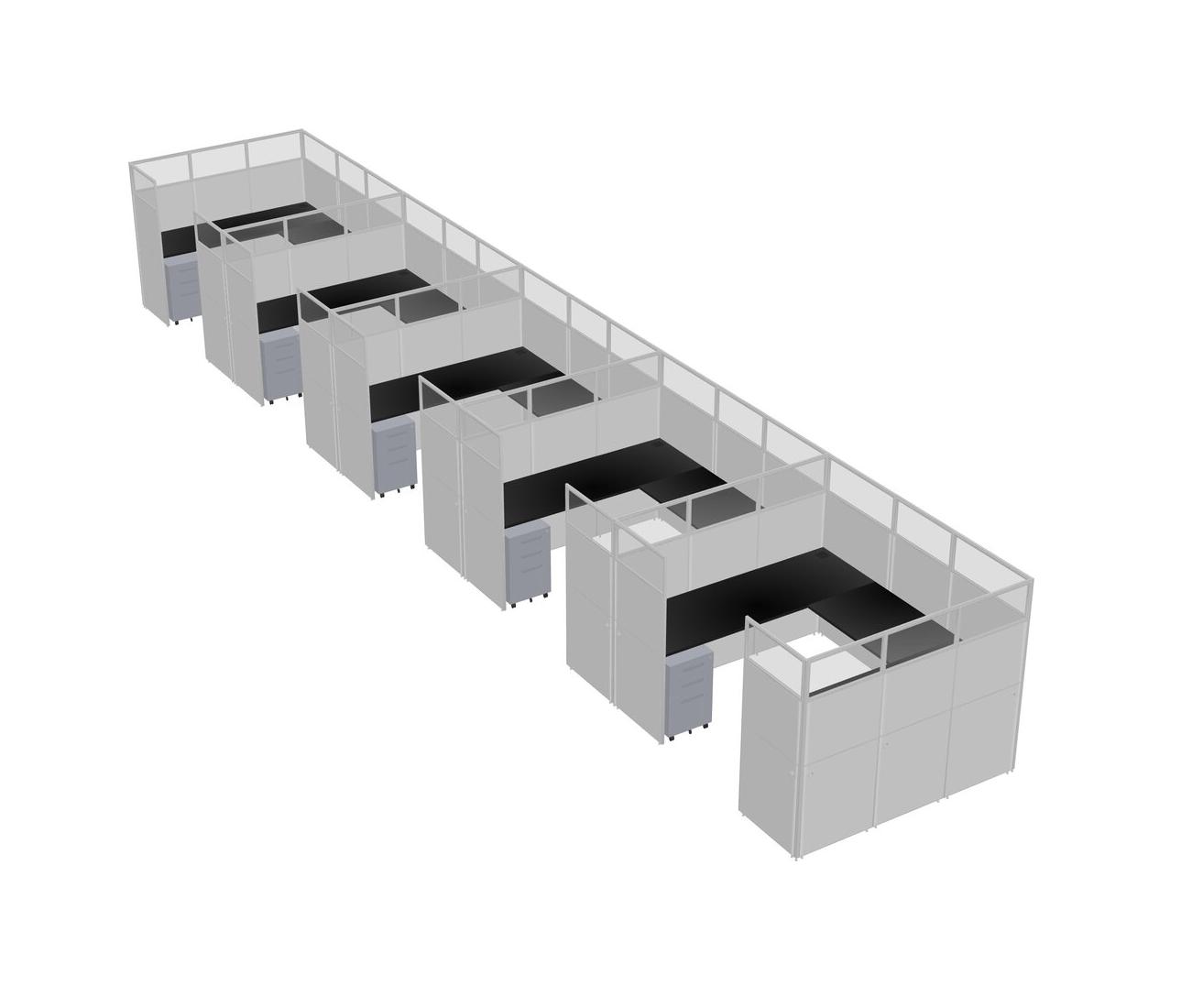 Black U-shaped Panel System For 5 Person + Metal Mobile Drawers For 5 User(s)