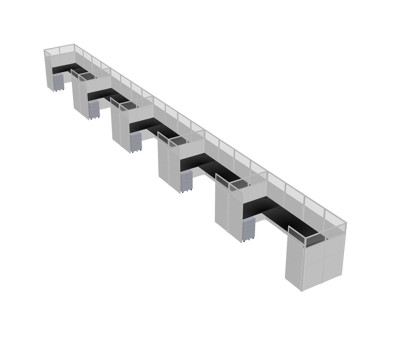 Black U-shaped Panel System For 5 Person + Metal Mobile Drawers For 5 User(s)