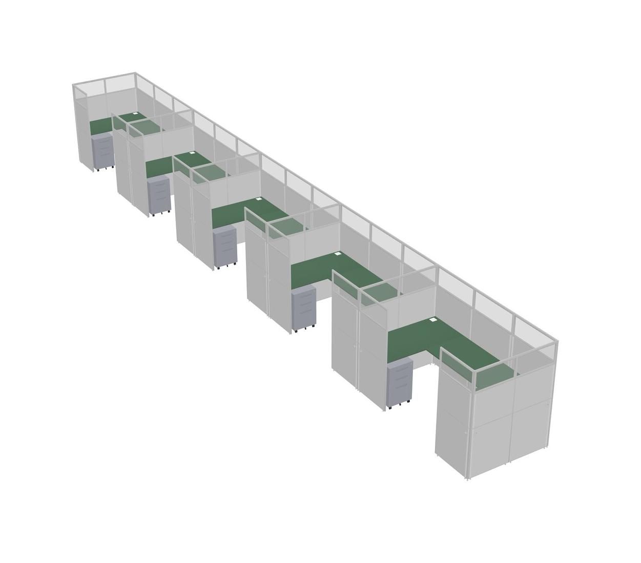 Green U-shaped Panel System For 5 Person + Metal Mobile Drawers For 5 User(s)