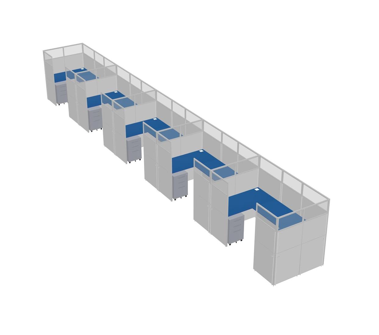 Prism Blue U-shaped Panel System For 5 Person + Metal Mobile Drawers For 5 User(s)