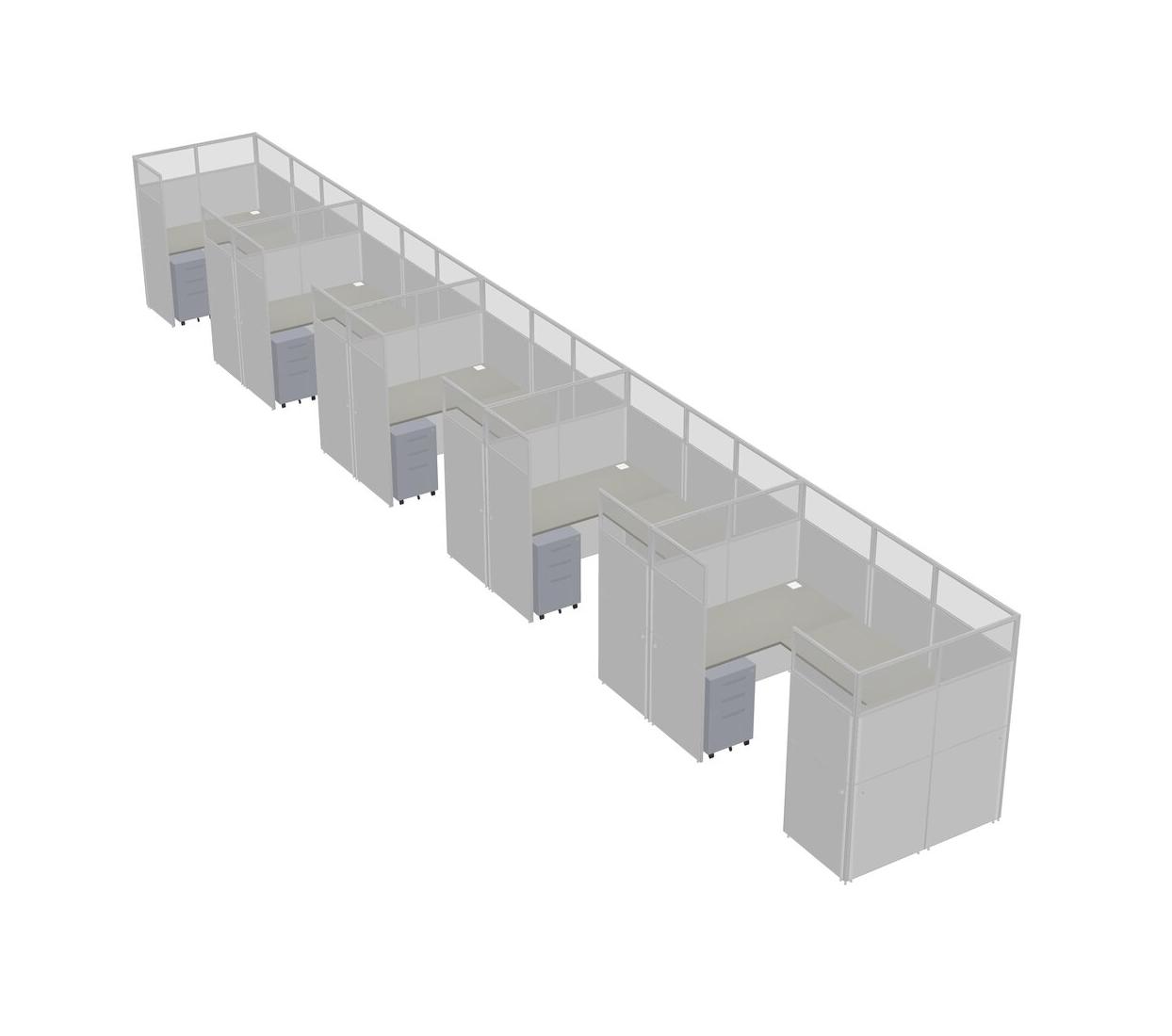 Grey Shadows U-shaped Panel System For 5 Person + Metal Mobile Drawers For 5 User(s)