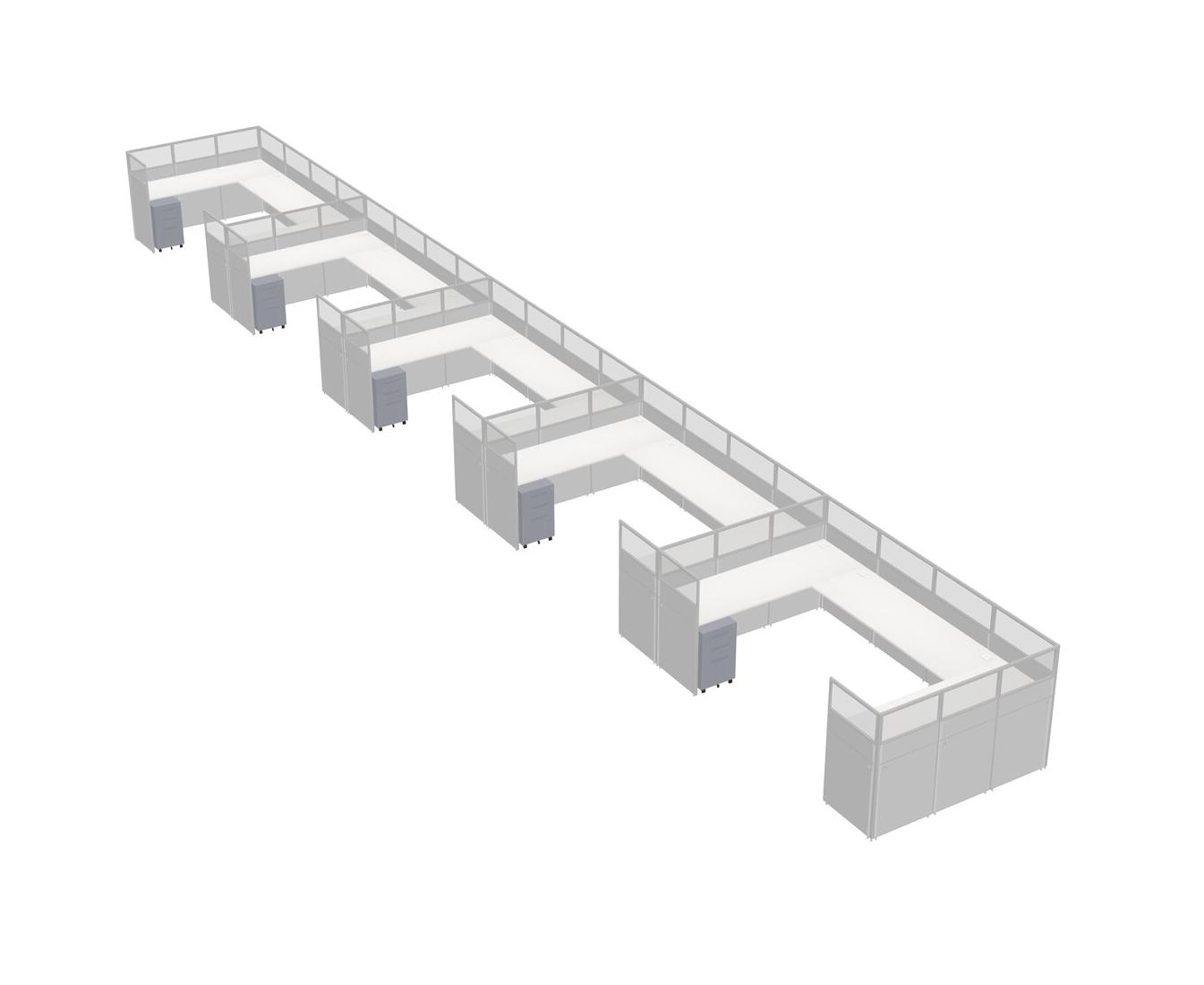 White U-shaped Panel System For 5 Person + Metal Mobile Drawers For 5 User(s)