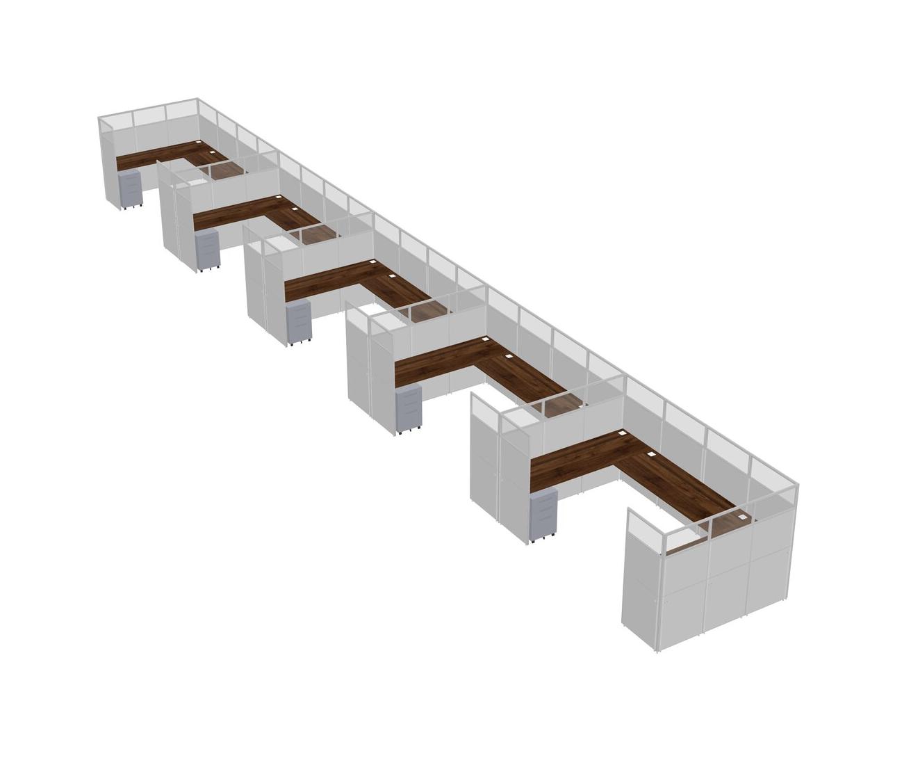 Columbia Walnut U-shaped Panel System For 5 Person + Metal Mobile Drawers For 5 User(s)