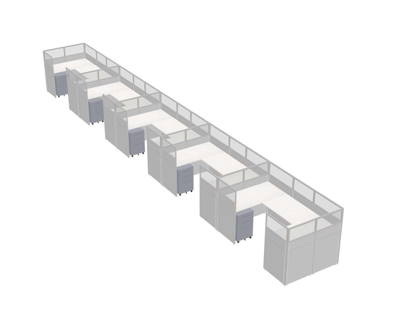 White U-shaped Panel System For 5 Person + Metal Mobile Drawers For 5 User(s)