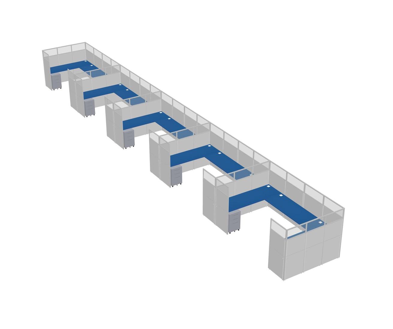 Prism Blue U-shaped Panel System For 5 Person + Metal Mobile Drawers For 5 User(s)