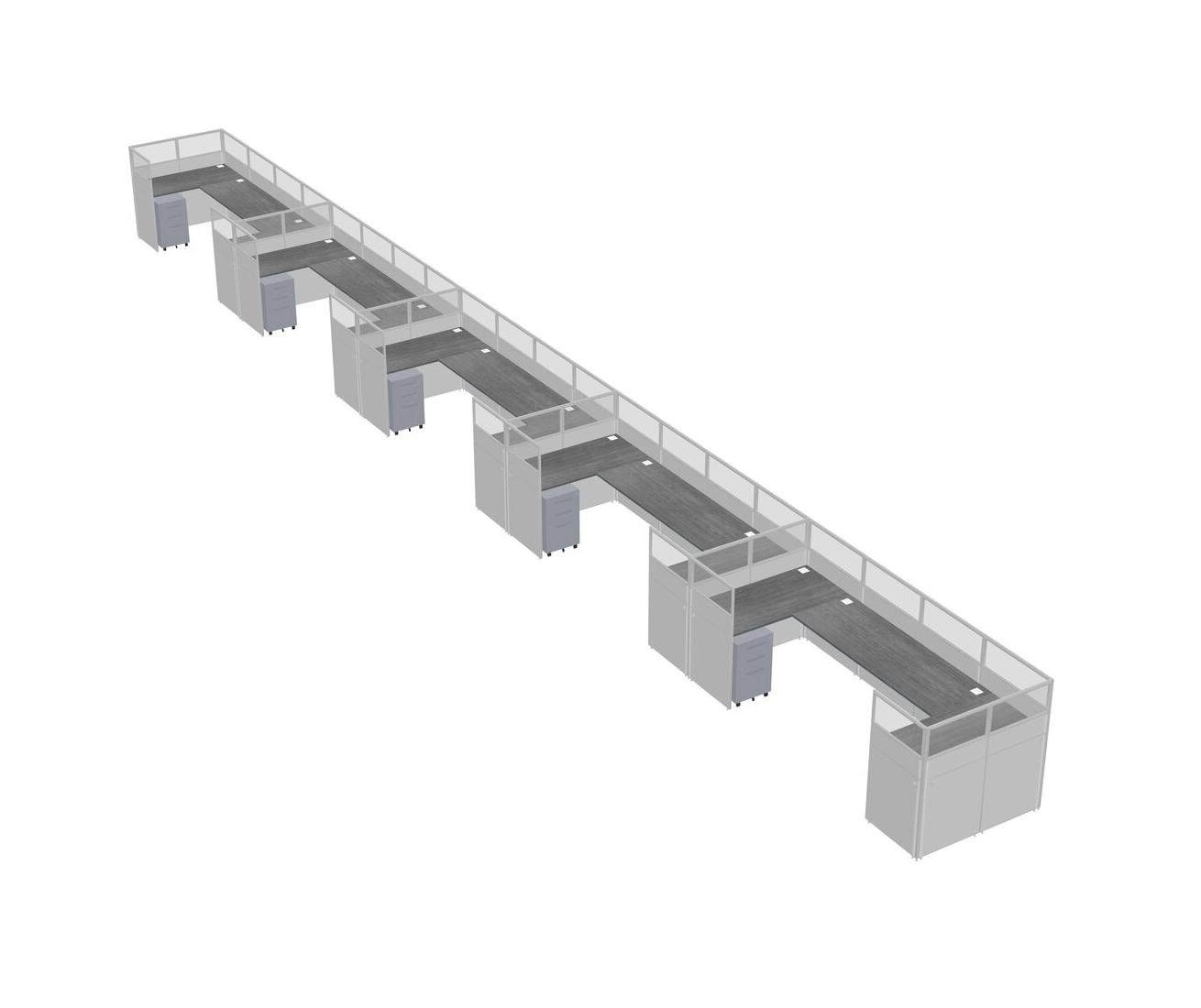 Grey U-shaped Panel System For 5 Person + Metal Mobile Drawers For 5 User(s)