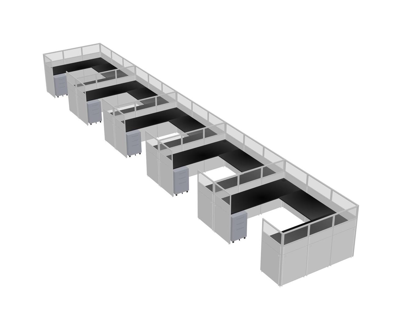 Black U-shaped Panel System For 5 Person + Metal Mobile Drawers For 5 User(s)