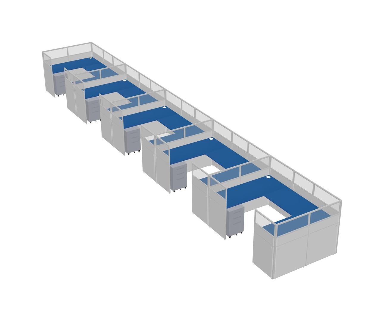 Prism Blue U-shaped Panel System For 5 Person + Metal Mobile Drawers For 5 User(s)