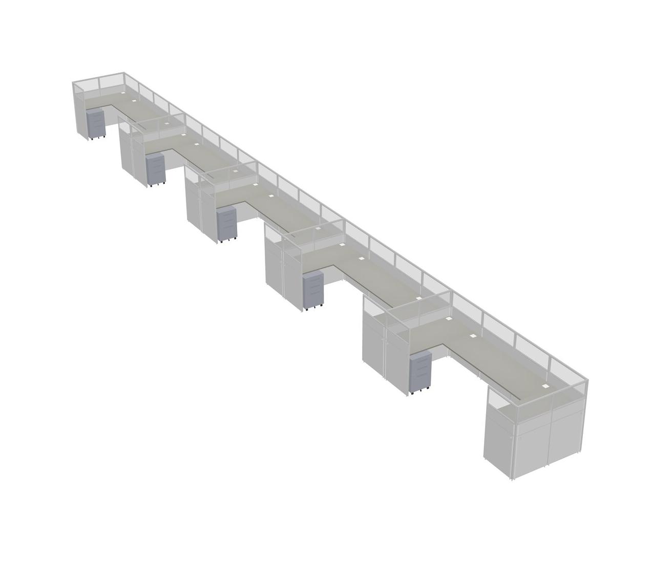 Grey Shadows U-shaped Panel System For 5 Person + Metal Mobile Drawers For 5 User(s)