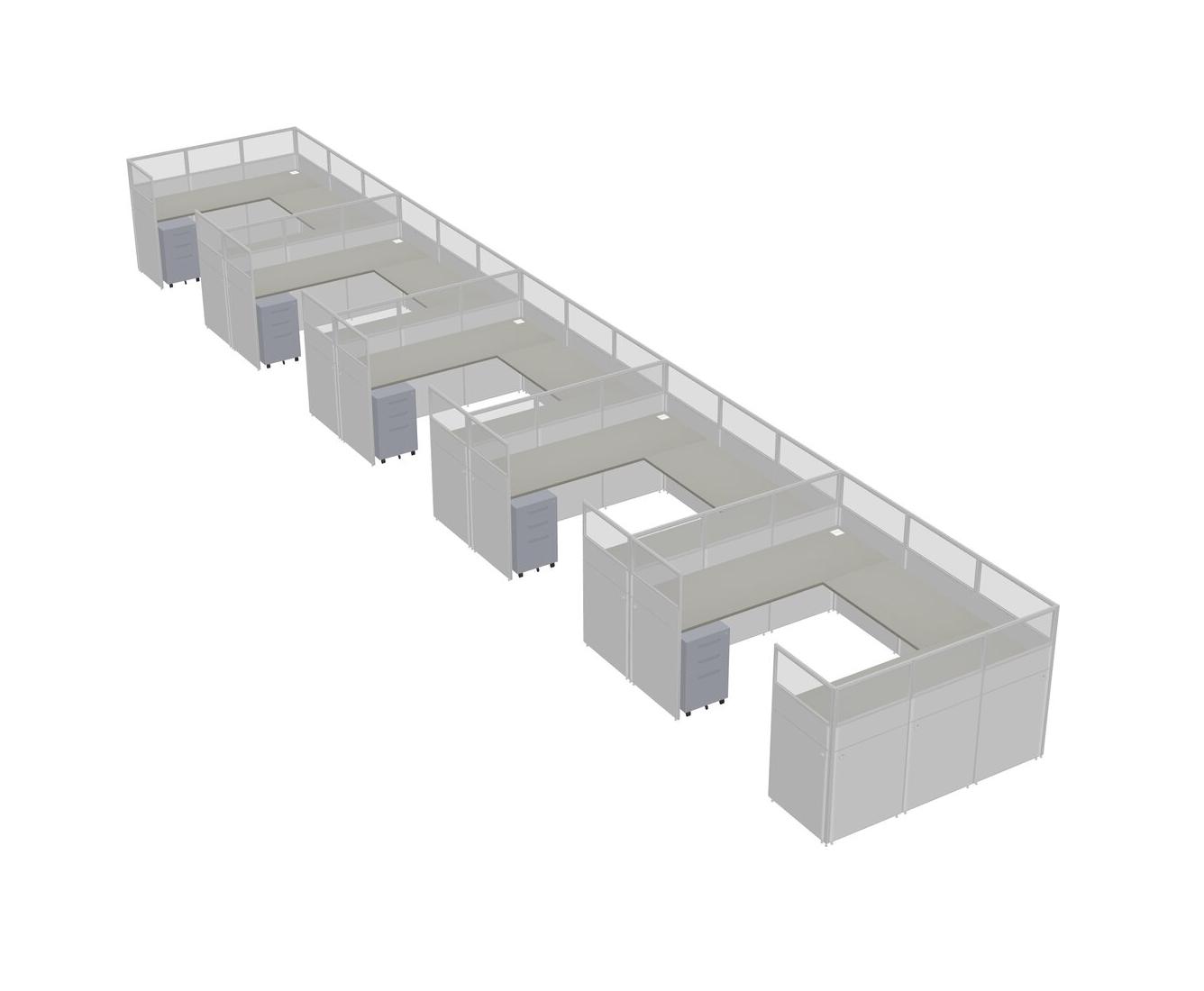 Grey Shadows U-shaped Panel System For 5 Person + Metal Mobile Drawers For 5 User(s)