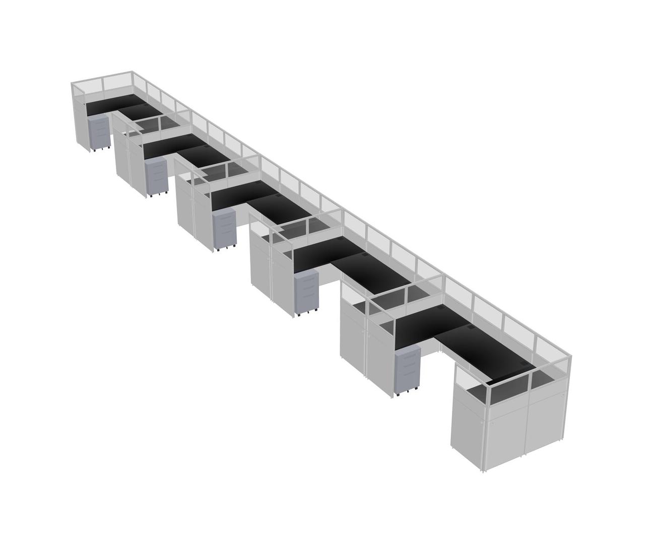 Black U-shaped Panel System For 5 Person + Metal Mobile Drawers For 5 User(s)
