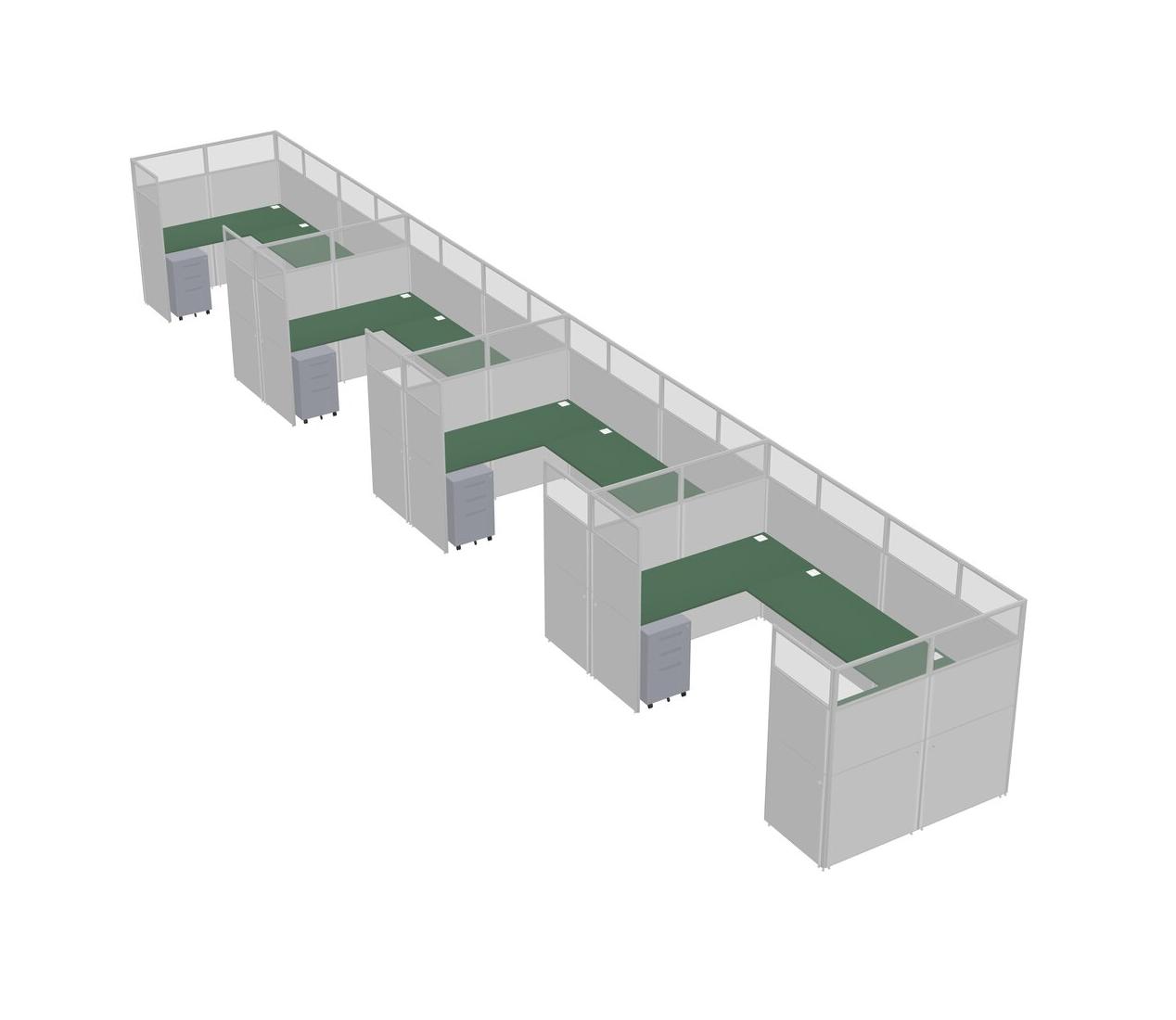 Green U-shaped Panel System For 4 Person + Metal Mobile Drawers For 4 User(s)
