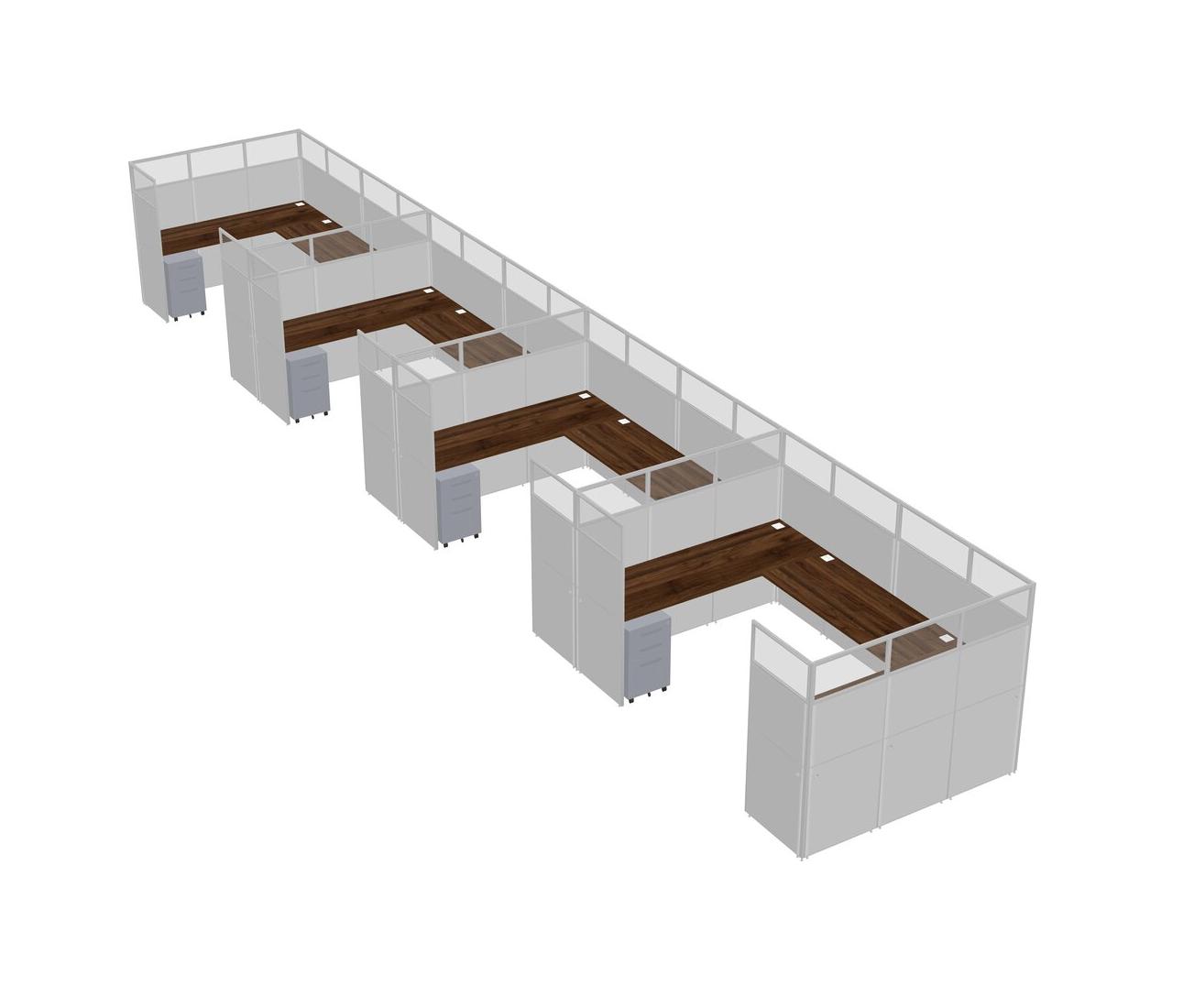 Columbia Walnut U-shaped Panel System For 4 Person + Metal Mobile Drawers For 4 User(s)