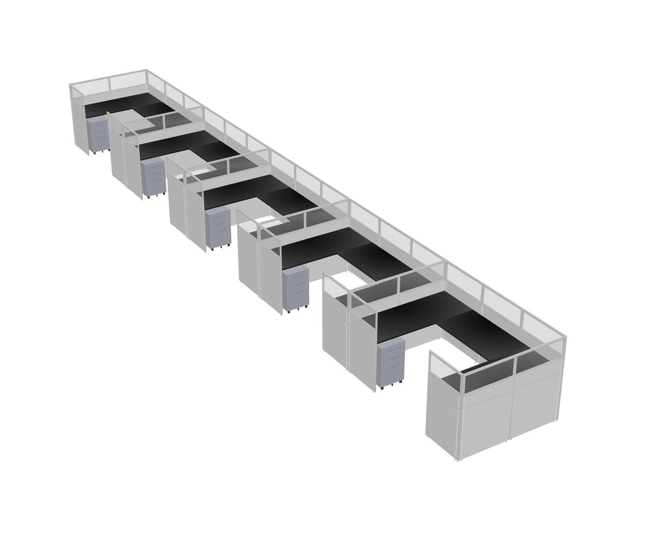 Black U-shaped Panel System For 5 Person + Metal Mobile Drawers For 5 User(s)