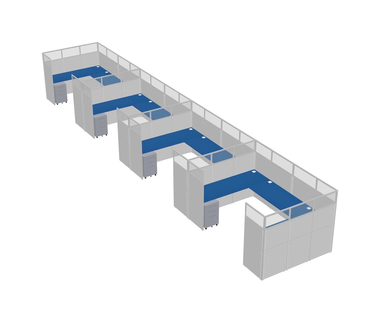 Prism Blue U-shaped Panel System For 4 Person + Metal Mobile Drawers For 4 User(s)