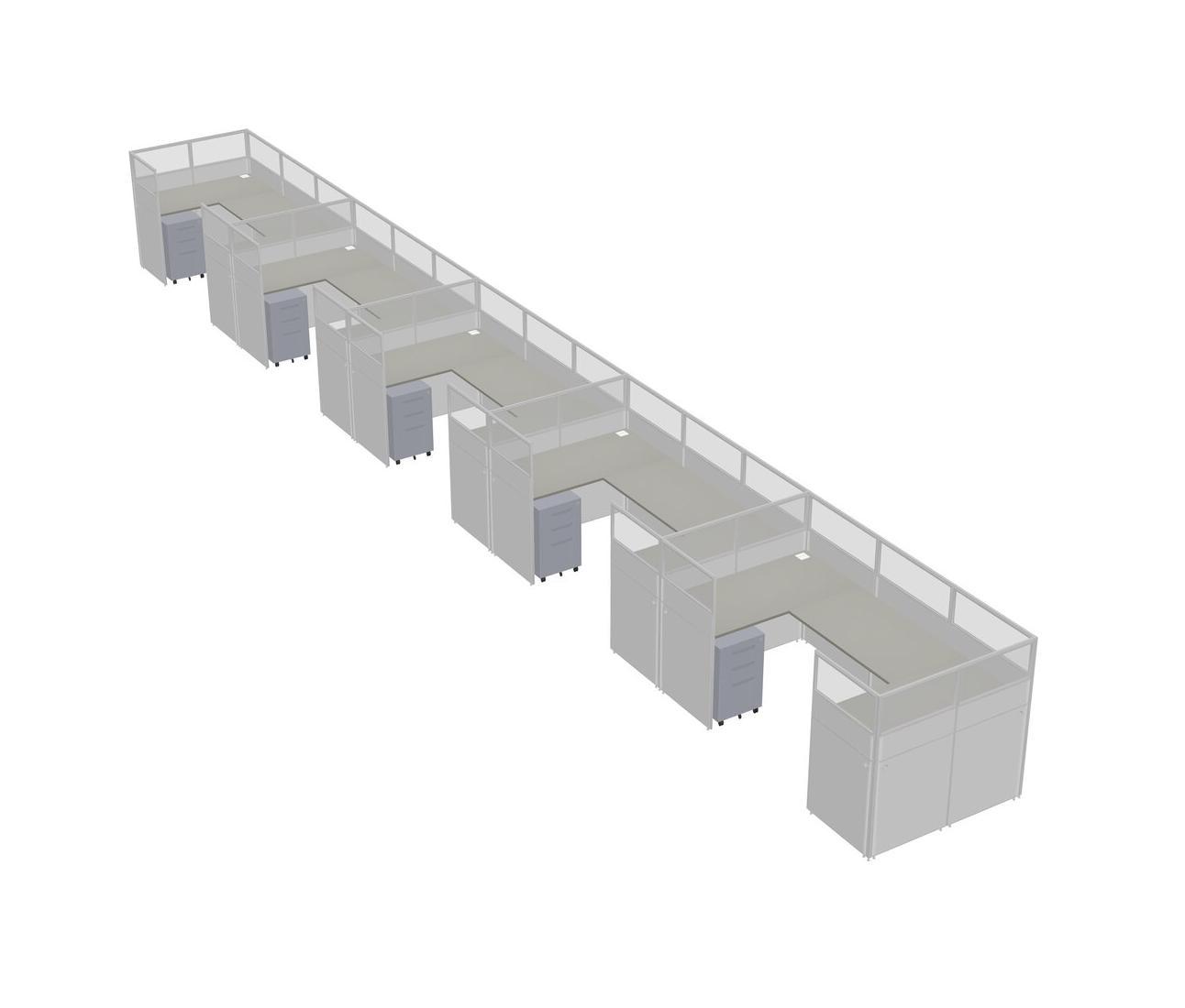 Grey Shadows U-shaped Panel System For 5 Person + Metal Mobile Drawers For 5 User(s)