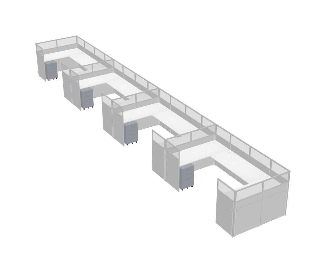 White U-shaped Panel System For 4 Person + Metal Mobile Drawers For 4 User(s)