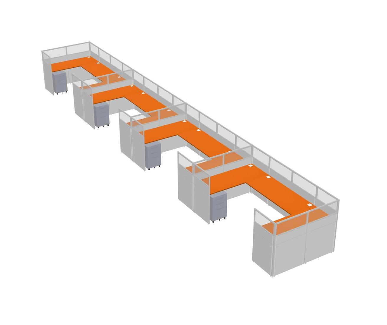 Orange U-shaped Panel System For 4 Person + Metal Mobile Drawers For 4 User(s)