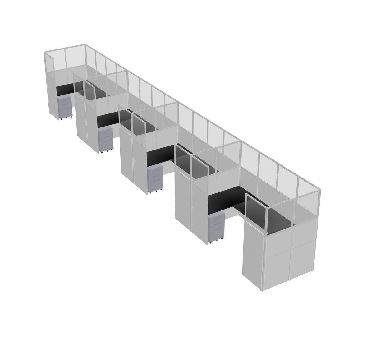 Black U-shaped Panel System For 4 Person + Metal Mobile Drawers For 4 User(s)