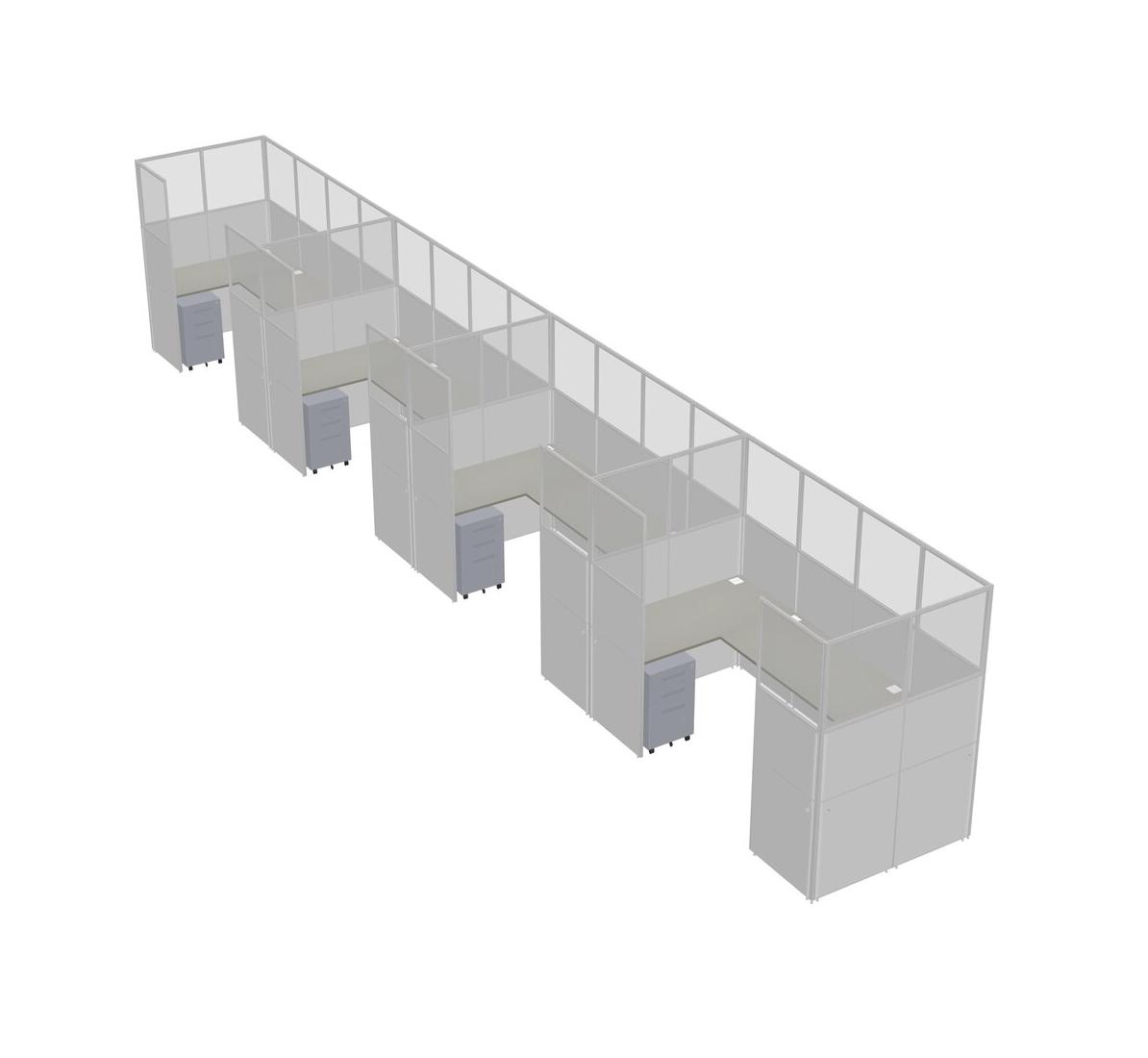 Grey Shadows U-shaped Panel System For 4 Person + Metal Mobile Drawers For 4 User(s)