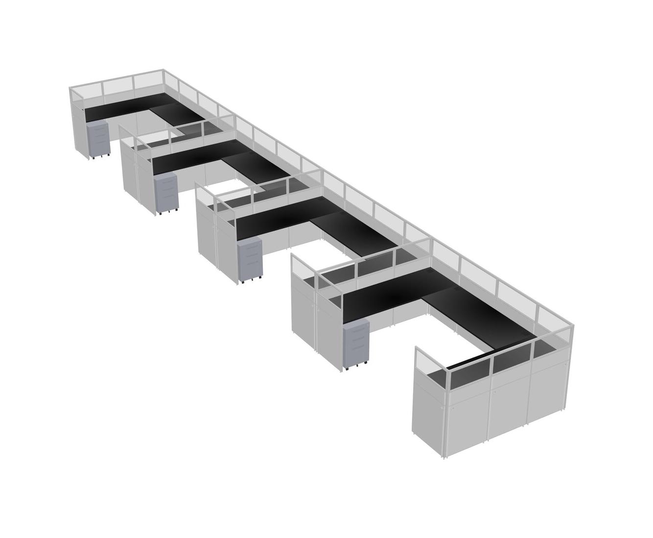Black U-shaped Panel System For 4 Person + Metal Mobile Drawers For 4 User(s)