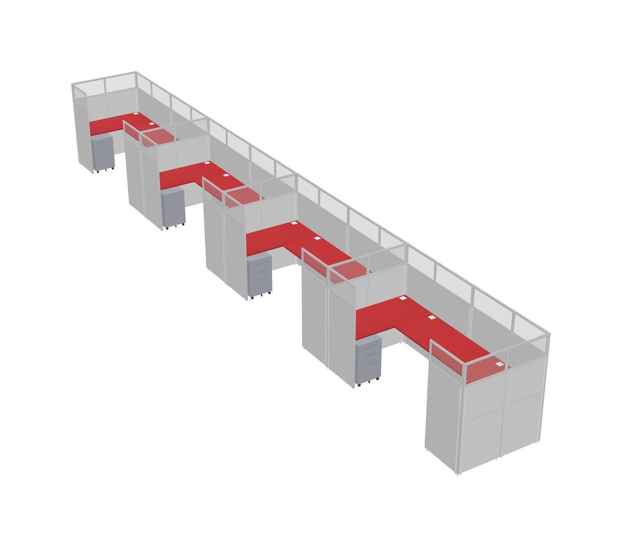 Prism Red U-shaped Panel System For 4 Person + Metal Mobile Drawers For 4 User(s)