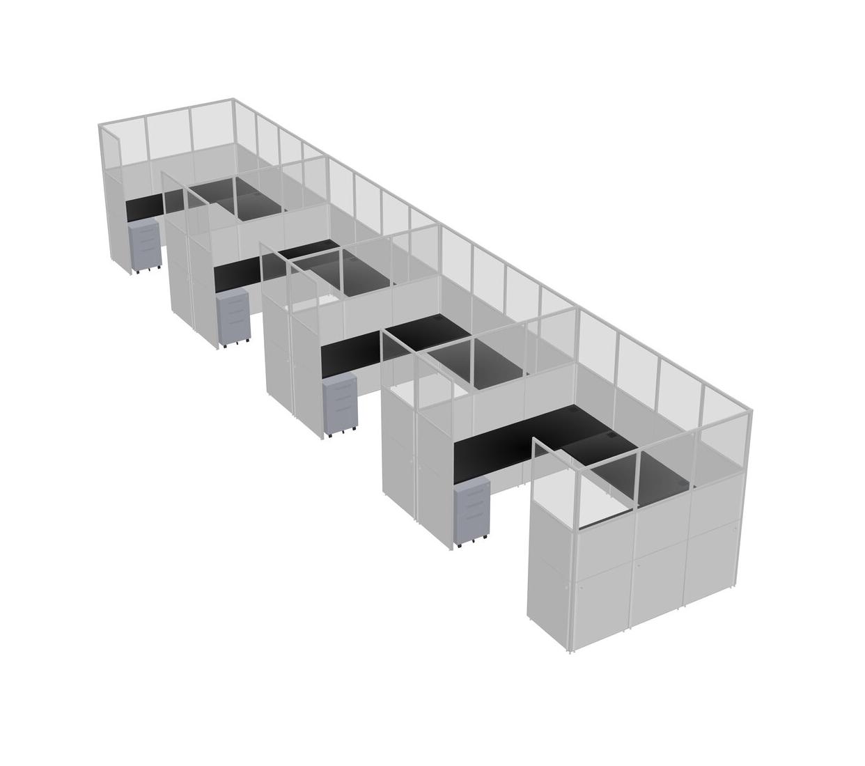 Black U-shaped Panel System For 4 Person + Metal Mobile Drawers For 4 User(s)