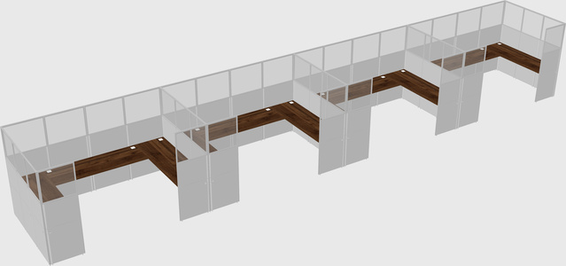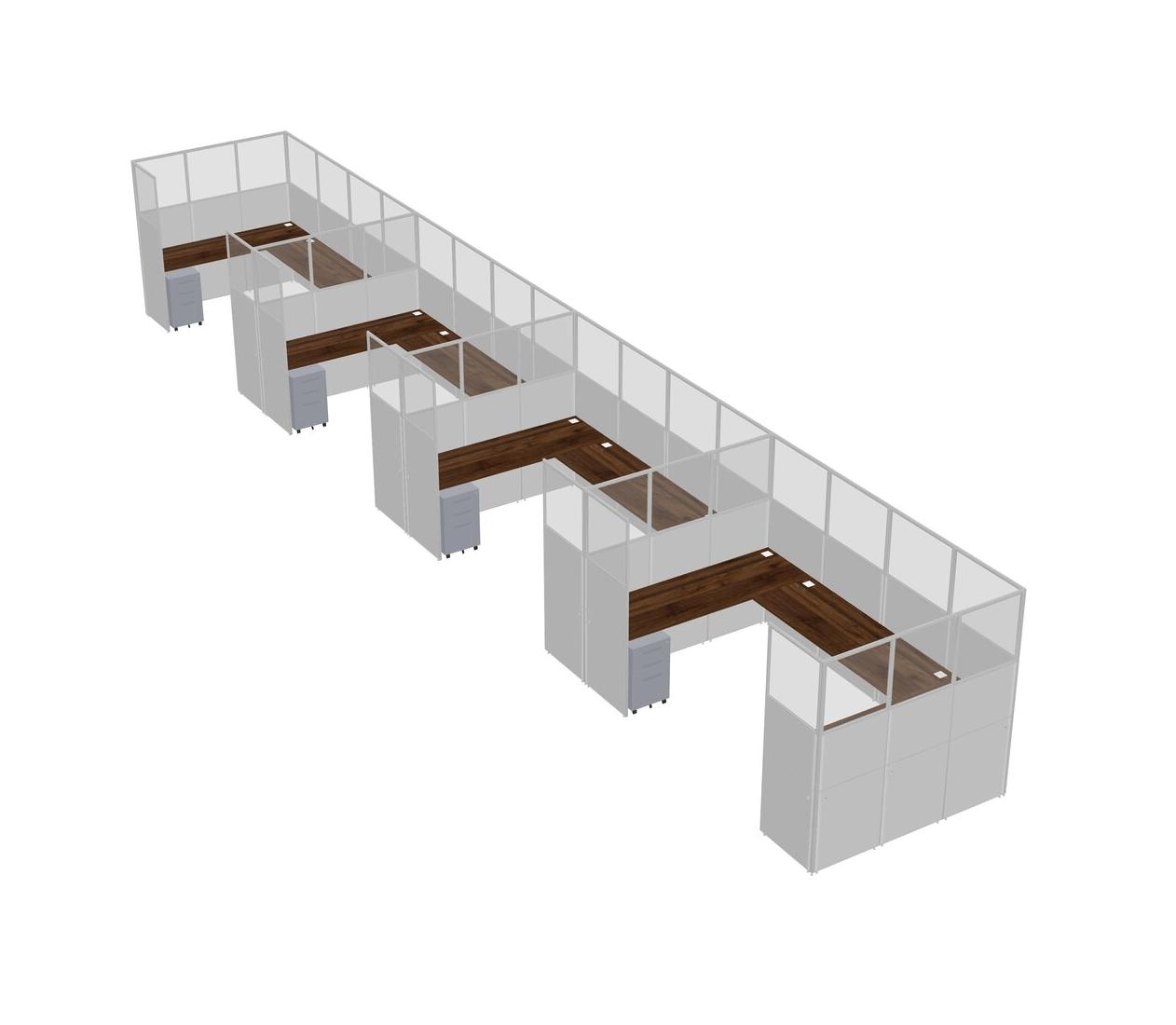 Columbia Walnut U-shaped Panel System For 4 Person + Metal Mobile Drawers For 4 User(s)