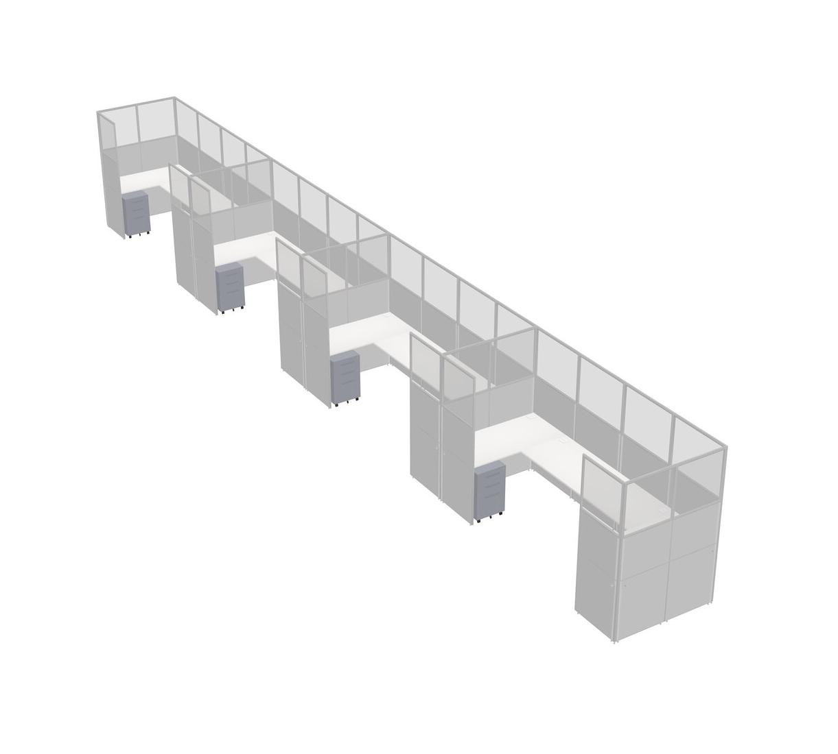 White U-shaped Panel System For 4 Person + Metal Mobile Drawers For 4 User(s)