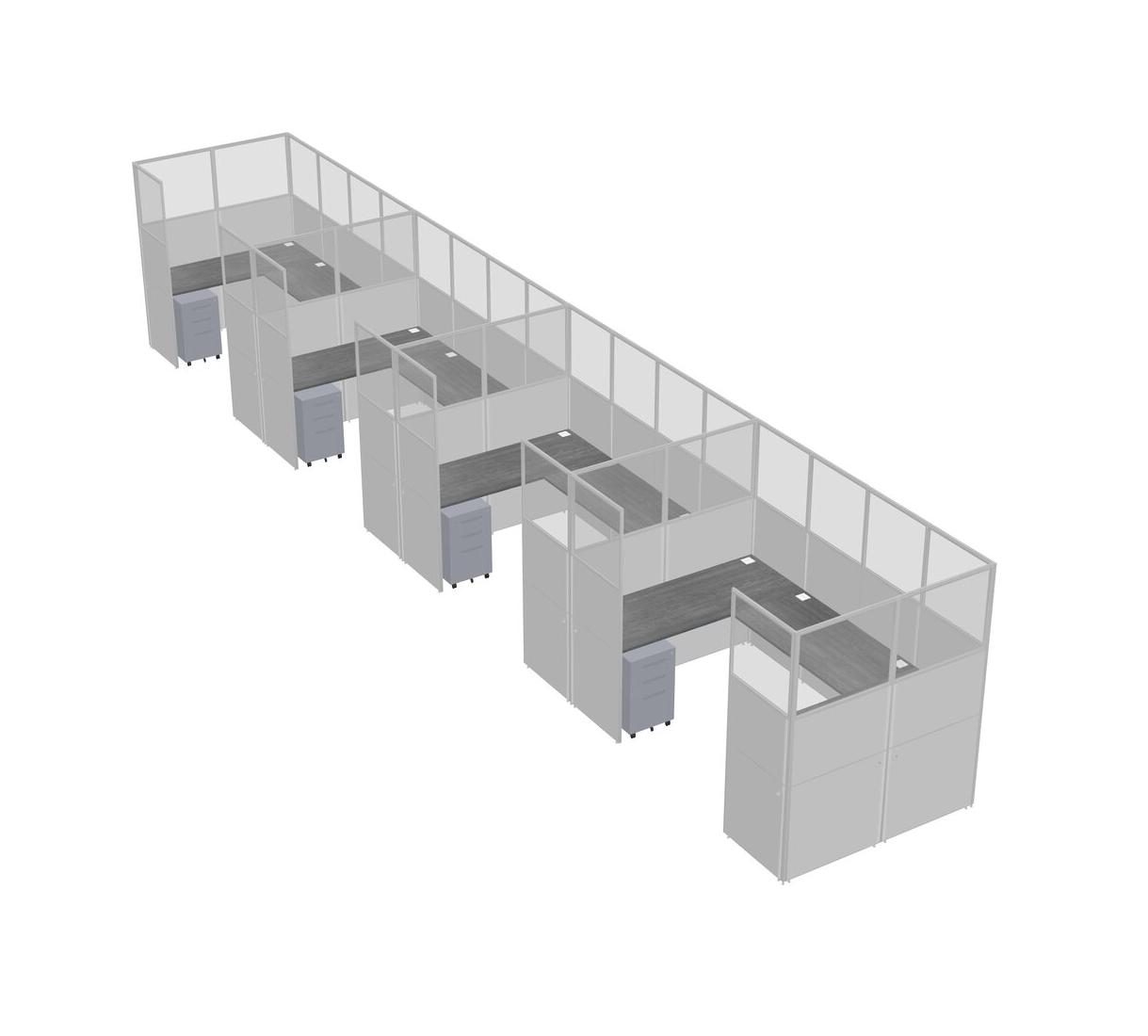 Grey U-shaped Panel System For 4 Person + Metal Mobile Drawers For 4 User(s)