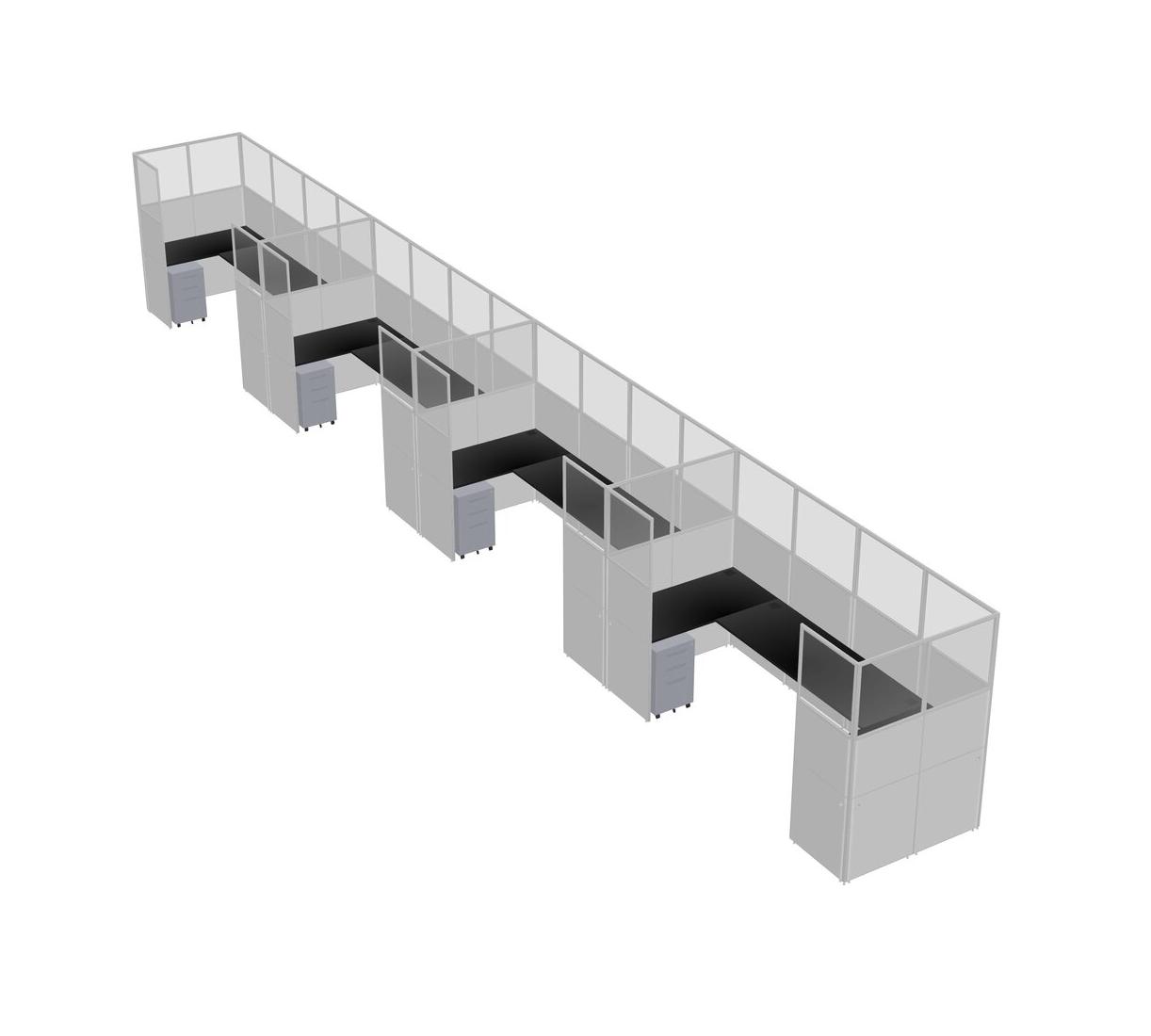 Black U-shaped Panel System For 4 Person + Metal Mobile Drawers For 4 User(s)