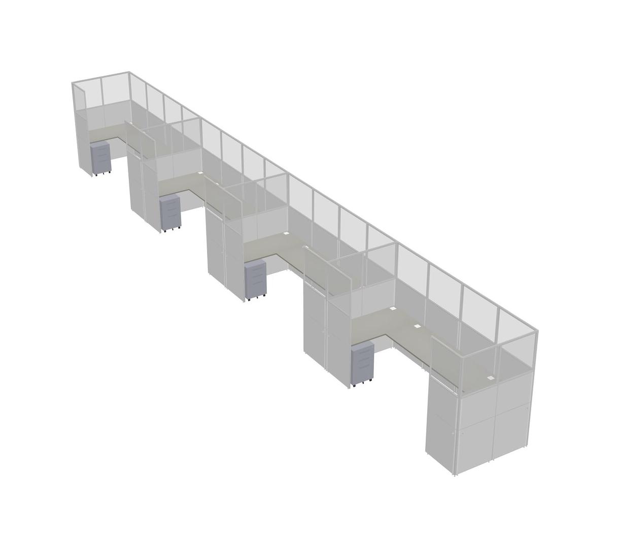 Grey Shadows U-shaped Panel System For 4 Person + Metal Mobile Drawers For 4 User(s)
