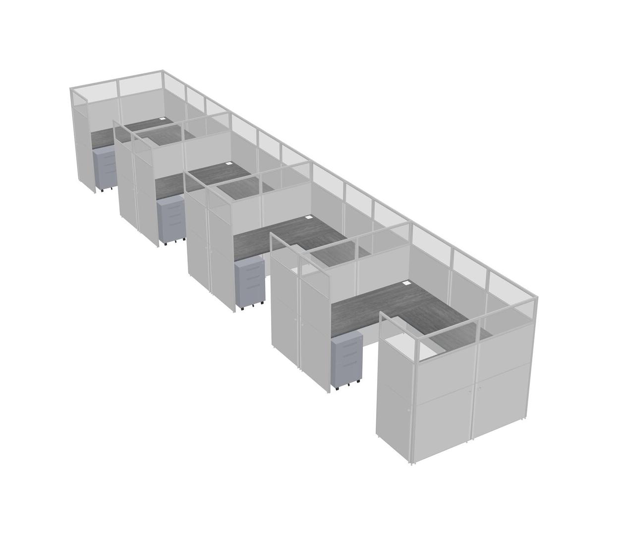 Grey U-shaped Panel System For 4 Person + Metal Mobile Drawers For 4 User(s)