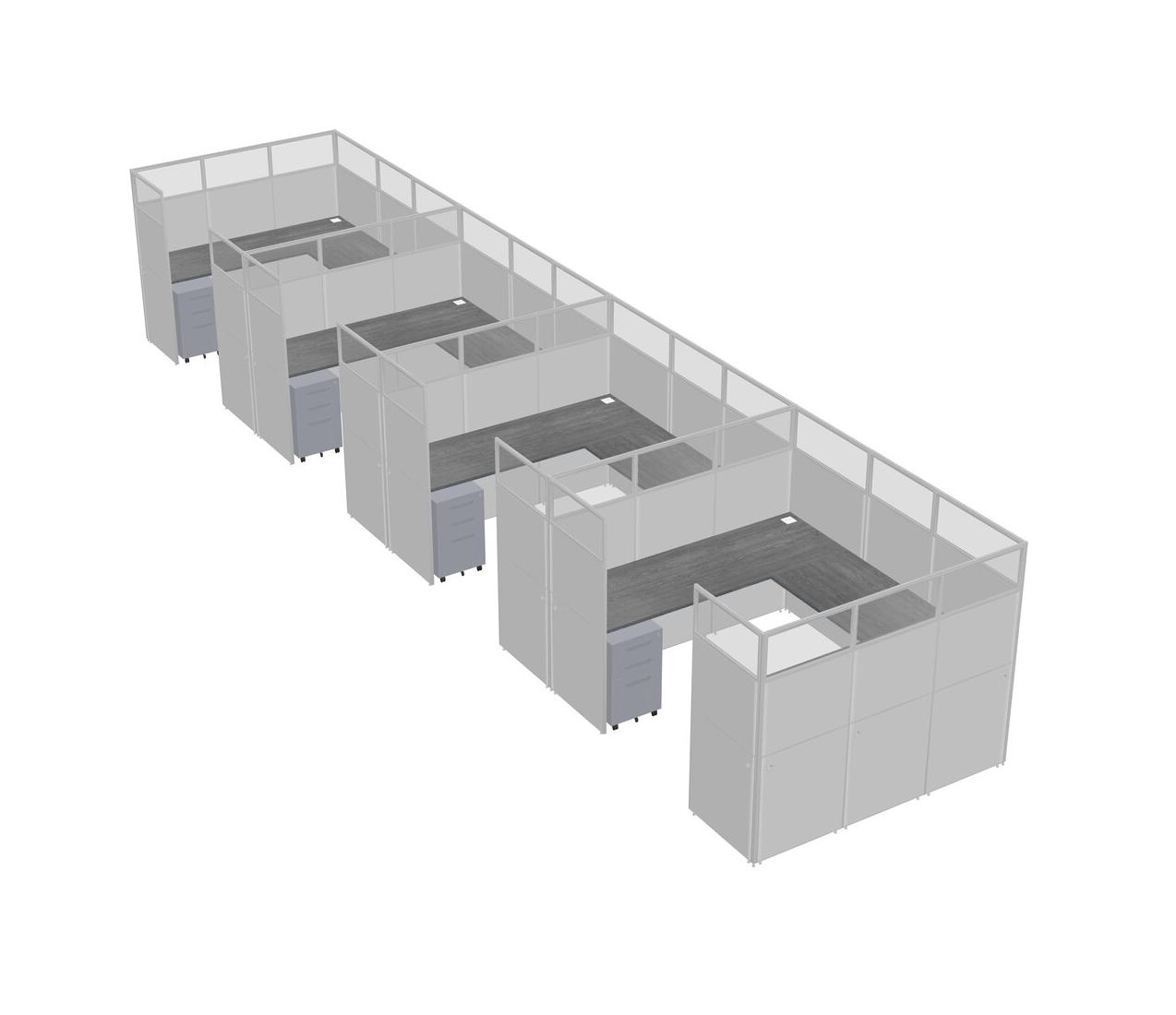 Grey U-shaped Panel System For 4 Person + Metal Mobile Drawers For 4 User(s)