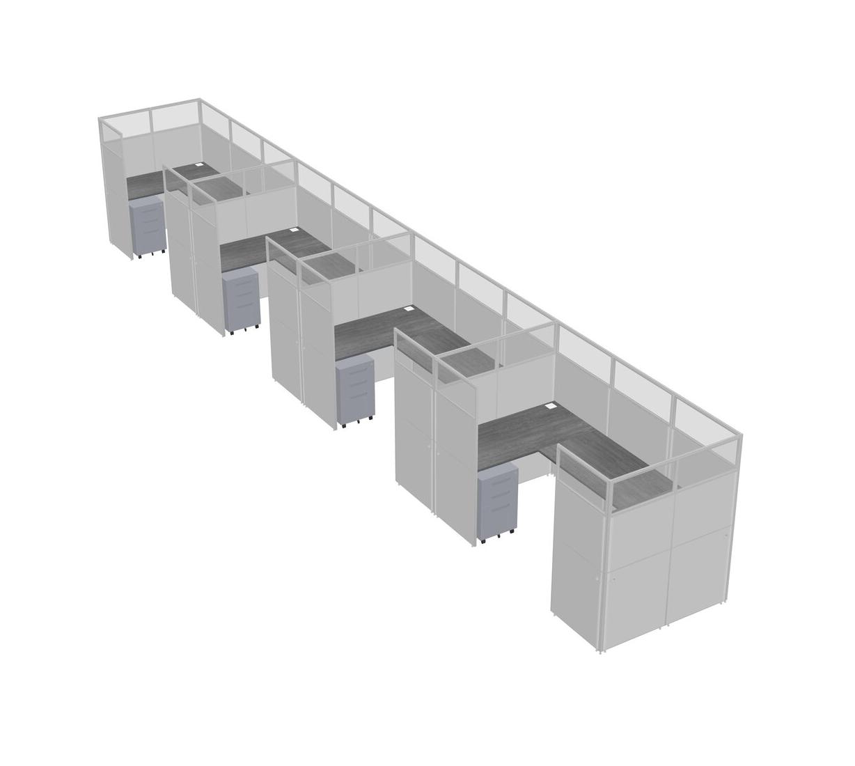 Grey U-shaped Panel System For 4 Person + Metal Mobile Drawers For 4 User(s)